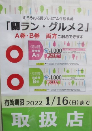 前の記事で紹介した むろらん応援プレミアム付商品券「蘭ラングルメ2」で