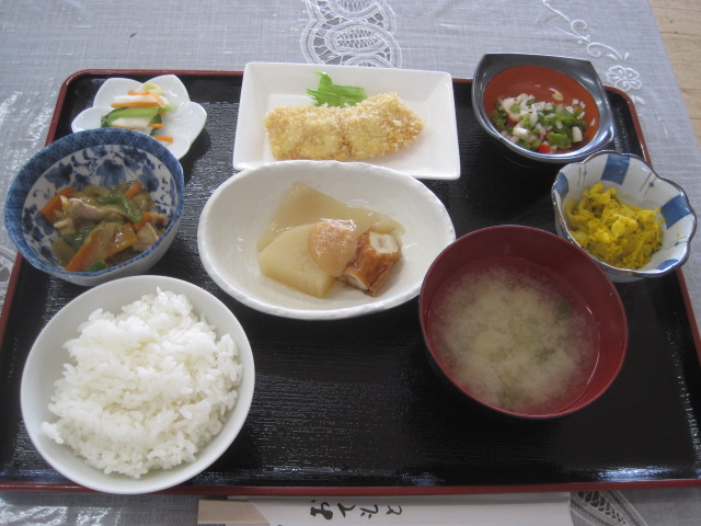 かぼちゃサラダ、酢の物、魚のフライなど、あっさりとした味付けで、おいしいです。